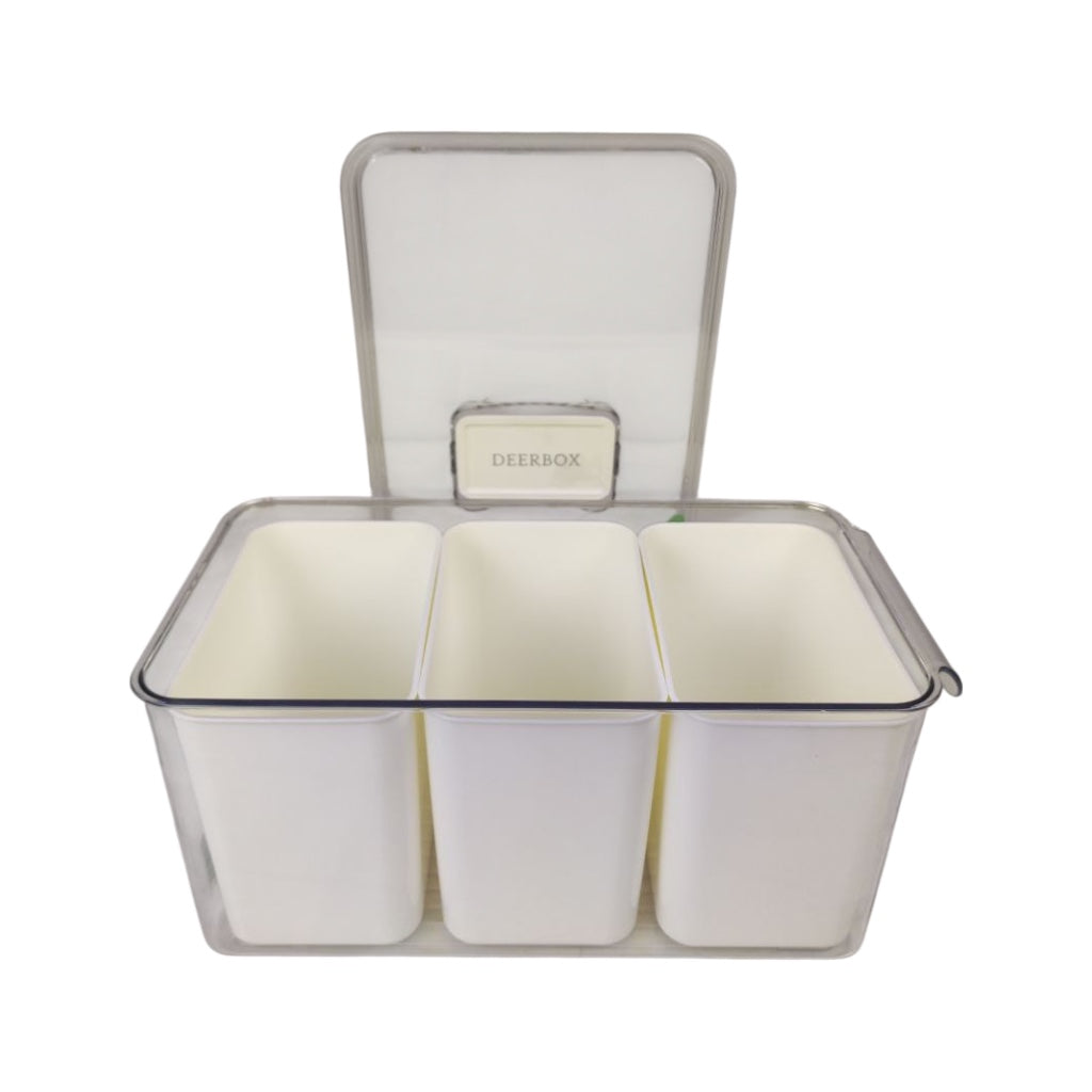 تخزين ذكي ومقسم: الأقسام الثلاثة المنفصلة تتيح تخزينًا مُحسَّنًا للأطعمة المختلفة، مما يمنع الاختلاط ويطيل عمر المنتجات.