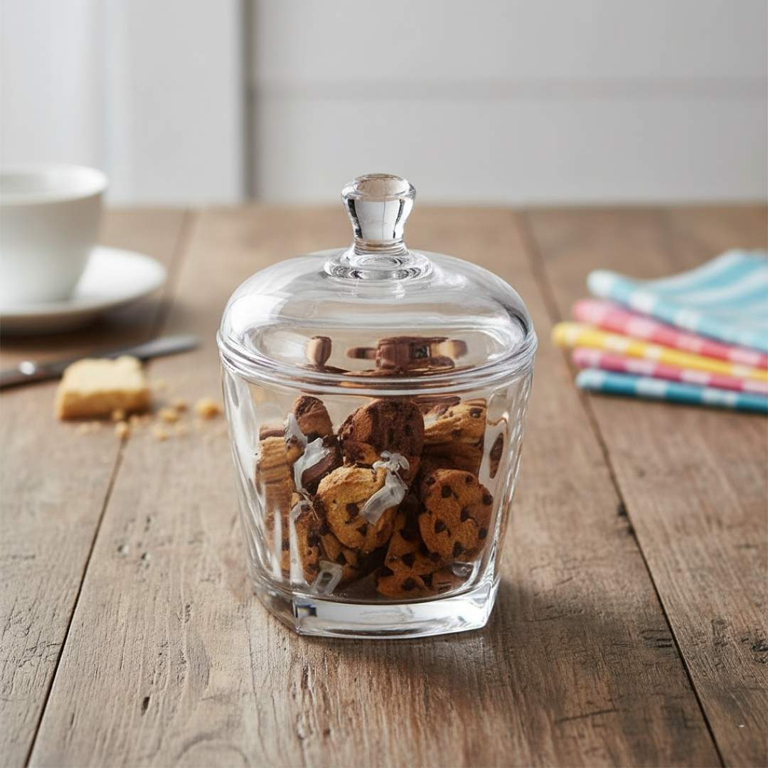 احفظي الحلويات والمكسرات بطريقة أنيقة مع البرطمان الزجاجي الصغير بغطاء من بلينكماكس، الذي يجمع بين الحجم العملي والتصميم الفاخر. مصنوع من زجاج متين وشفاف ليحافظ على المكونات طازجة ويضيف لمسة ديكور راقية لمطبخك أو طاولة التقديم.