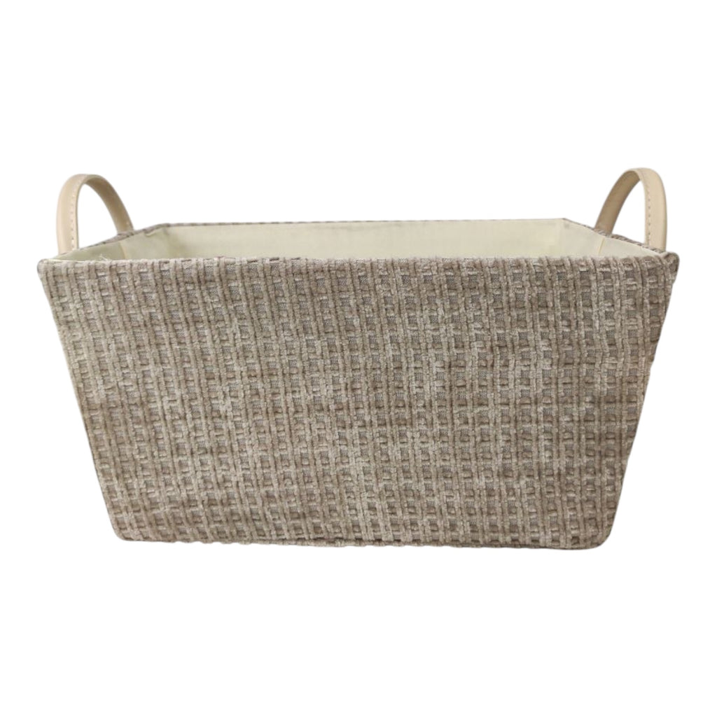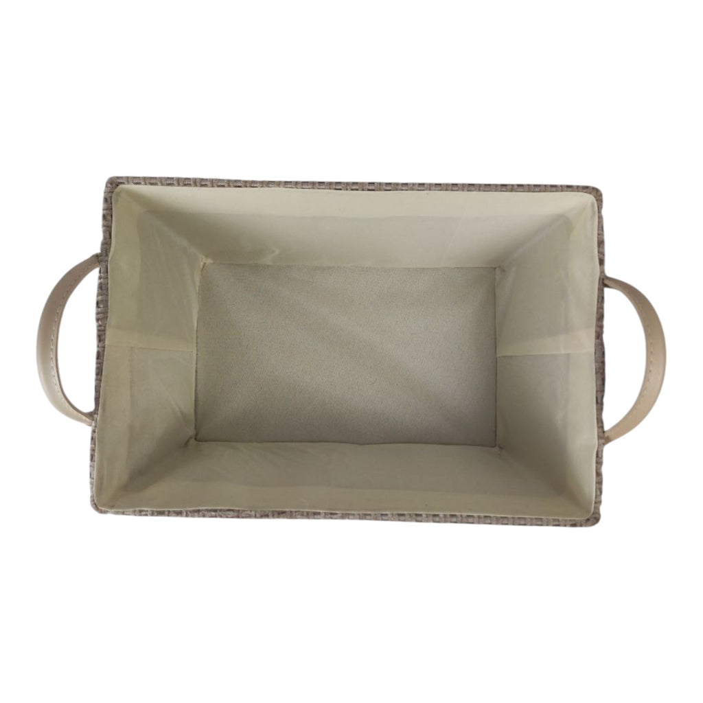 رتبي أغراضك بسهولة مع سلة التخزين القماشية بمقابض 32×21×16 سم. مصنوعة من قماش متين بتصميم عصري مزخرف، مثالية لحفظ الملابس والإكسسوارات والألعاب أو الأغراض المنزلية الصغيرة بشكل منظم. حجمها العملي ومقابضها الجانبية يجعلها خياراً أنيقاً ومفيداً لأي غرفة في منزلك.