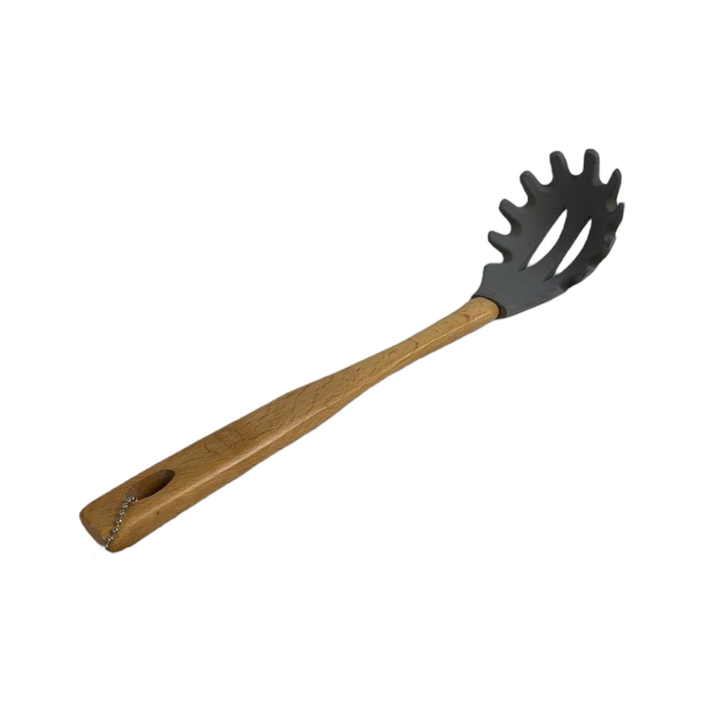 استمتعي بتقديم المكرونة بسهولة مع مغرفة المكرونة ماستر شيف 32×7 سم. تتميز برأس سيليكون مقاوم للحرارة ومقبض خشبي متين لتسهيل رفع وتقديم السباغيتي أو الفيتوتشيني أو الباستا بأمان. تصميم أنيق ومتوفرة بلونين رمادي أو أصفر لتضيف لمسة عصرية إلى مطبخك.