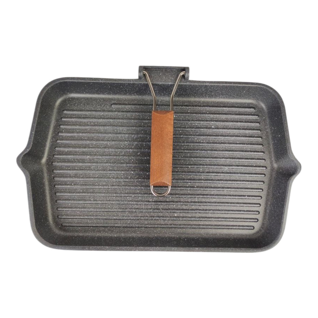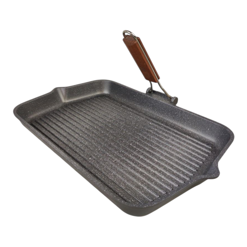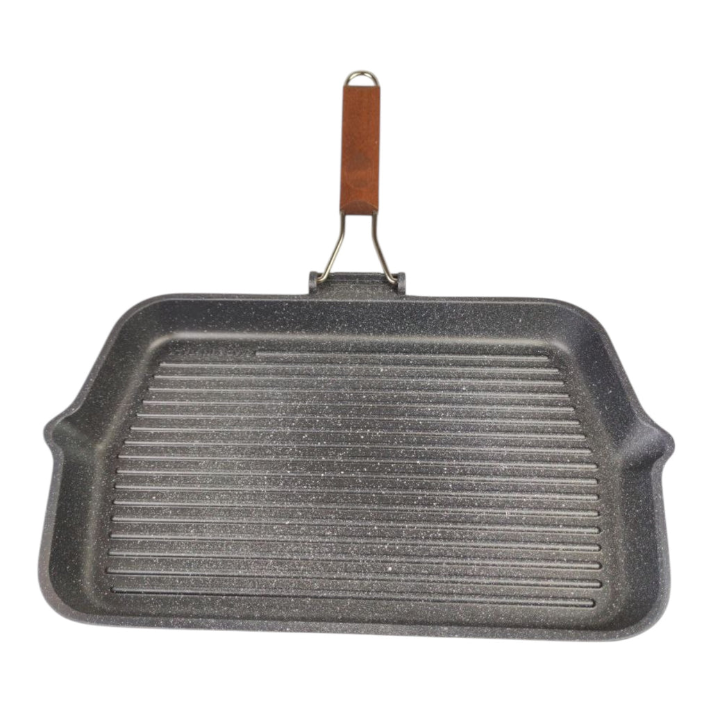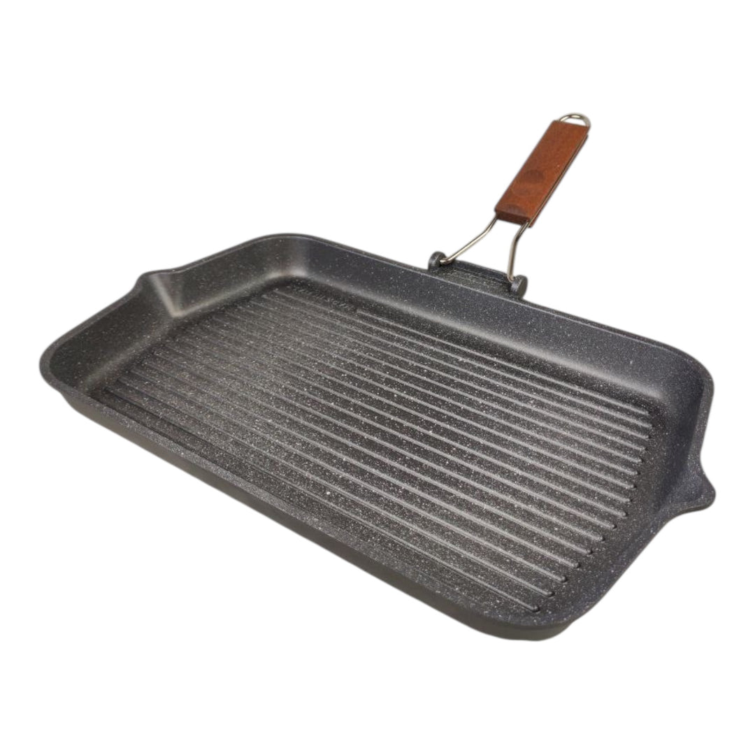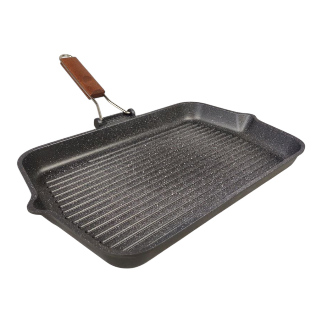 استمتعي بتجربة الشواء الاحترافية في المنزل مع مقلاة جريل ريسولي جرانيت 43×26×4 سم. مصممة خصيصًا للوجبات العائلية الكبيرة، مصنوعة في إيطاليا من ألمنيوم مصبوب متين مع طلاء جرانيت غير لاصق مقاوم للخدوش وسهل التنظيف، مما يتيح طهيًا صحيًا بزيت أقل. سطحها المستطيل الكبير مثالي لشواء عدة شرائح لحم، صدور دجاج، قطع سمك، برجر أو خضروات في نفس الوقت. خطوطها البارزة تمنح الطعام علامات شواء مميزة وتساعد على تصريف الدهون الزائدة. كما أن مقبضها الخشبي القابل للطي يضيف لمسة أنيقة مع سهولة الاستخدام والتخزين.