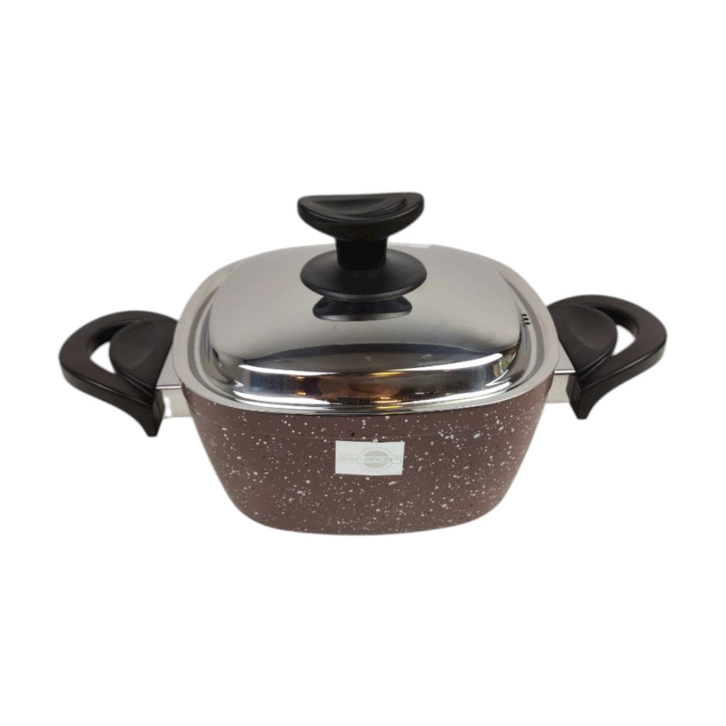 حلة الجرانيت من سافلون هي الحل الأمثل لطهي صحي وفعال. صُنعت هذه الحلة من خامة متينة وعالية الجودة مع طلاء جرانيت فاخر، معروف بأدائه المتفوق في منع الالتصاق ومتانته الممتازة. يضمن هيكل الحلة توزيعًا متساويًا للحرارة، مما يمنع تكون البؤر الساخنة ويتيح طهي طعامك بشكل مثالي في كل مرة. اللمسة النهائية باللون البني الأنيق المنقط وتصميمها العصري، مع غطاء ستانلس ستيل لامع، يضيفان لمسة جمالية رائعة لمطبخك ومائدة الطعام. المسكات المريحة والمعزولة للحرارة توفر قبضة آمنة ومريحة، حتى عند امتلاء القدر.