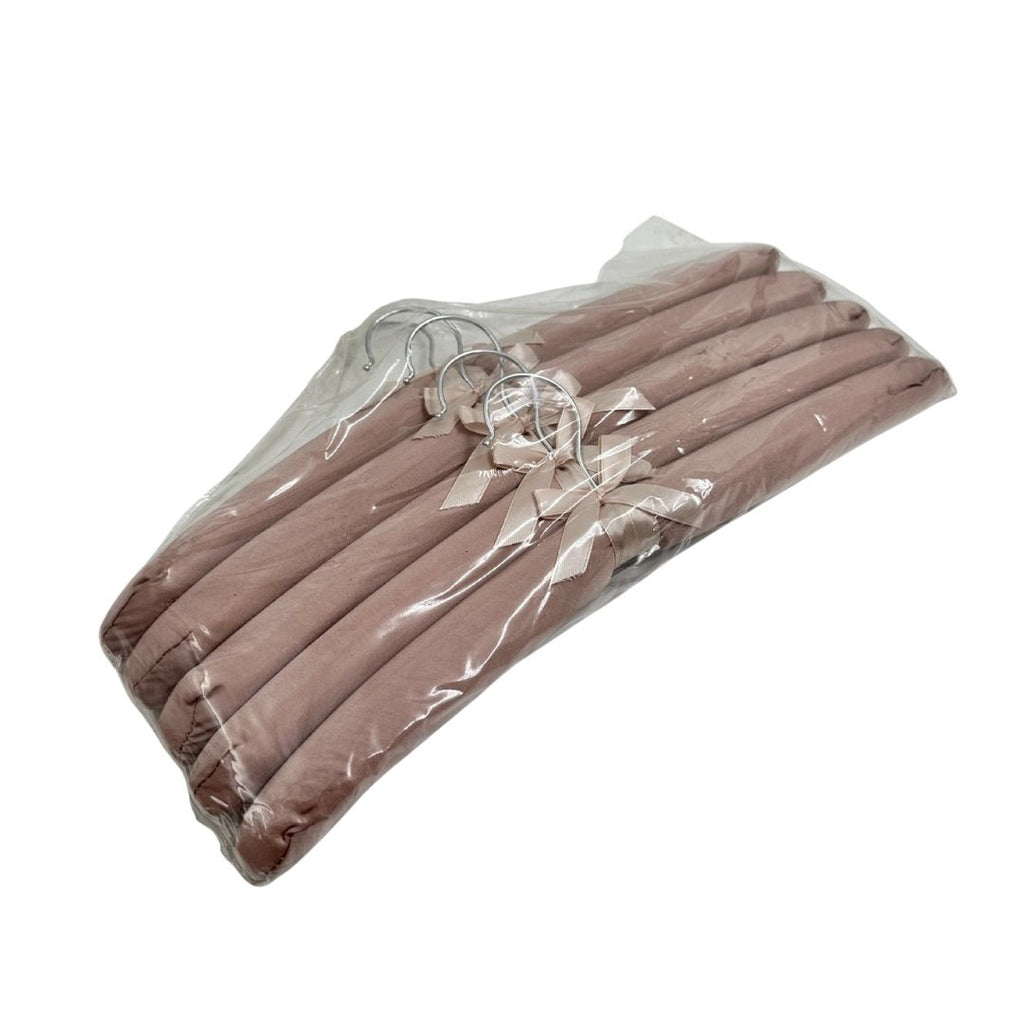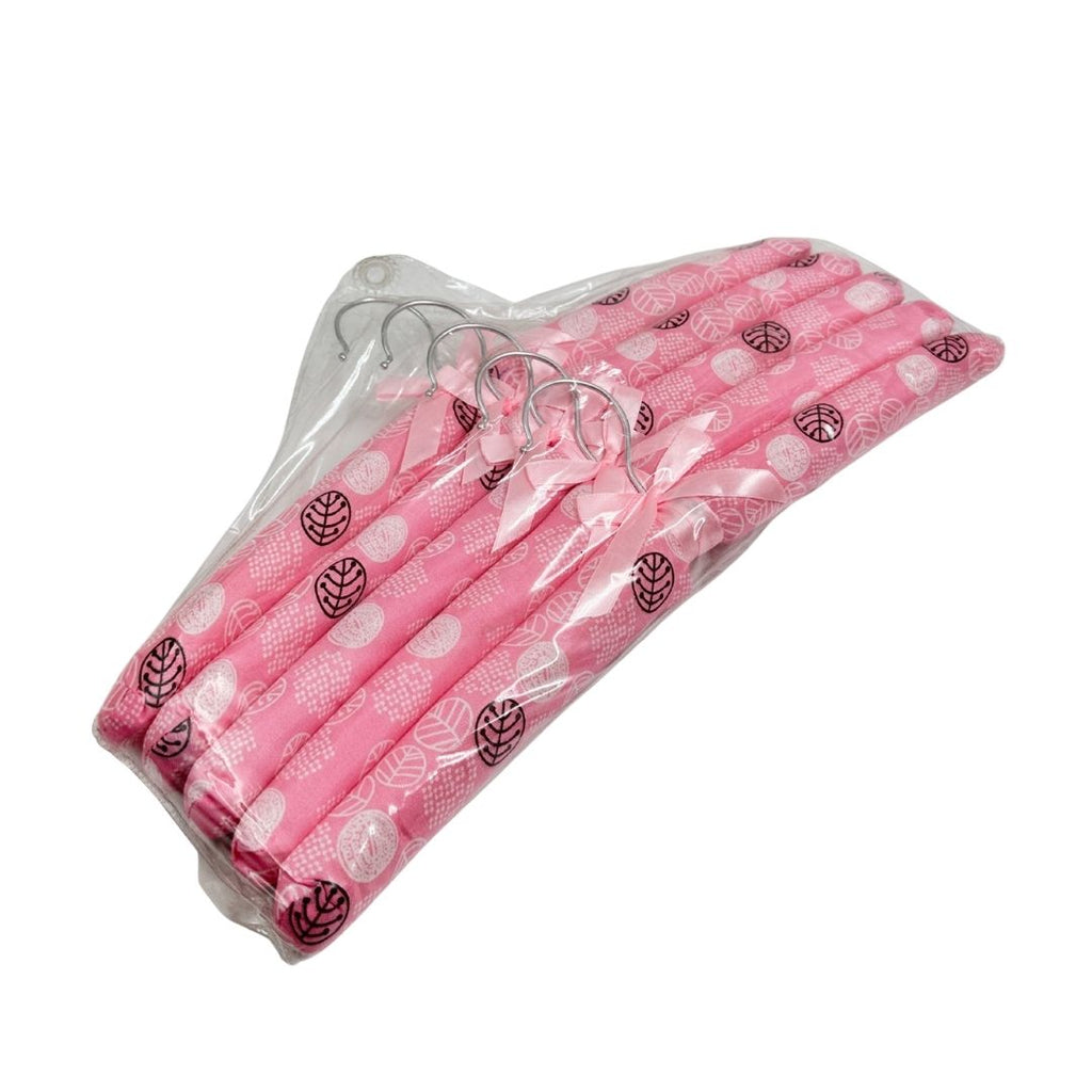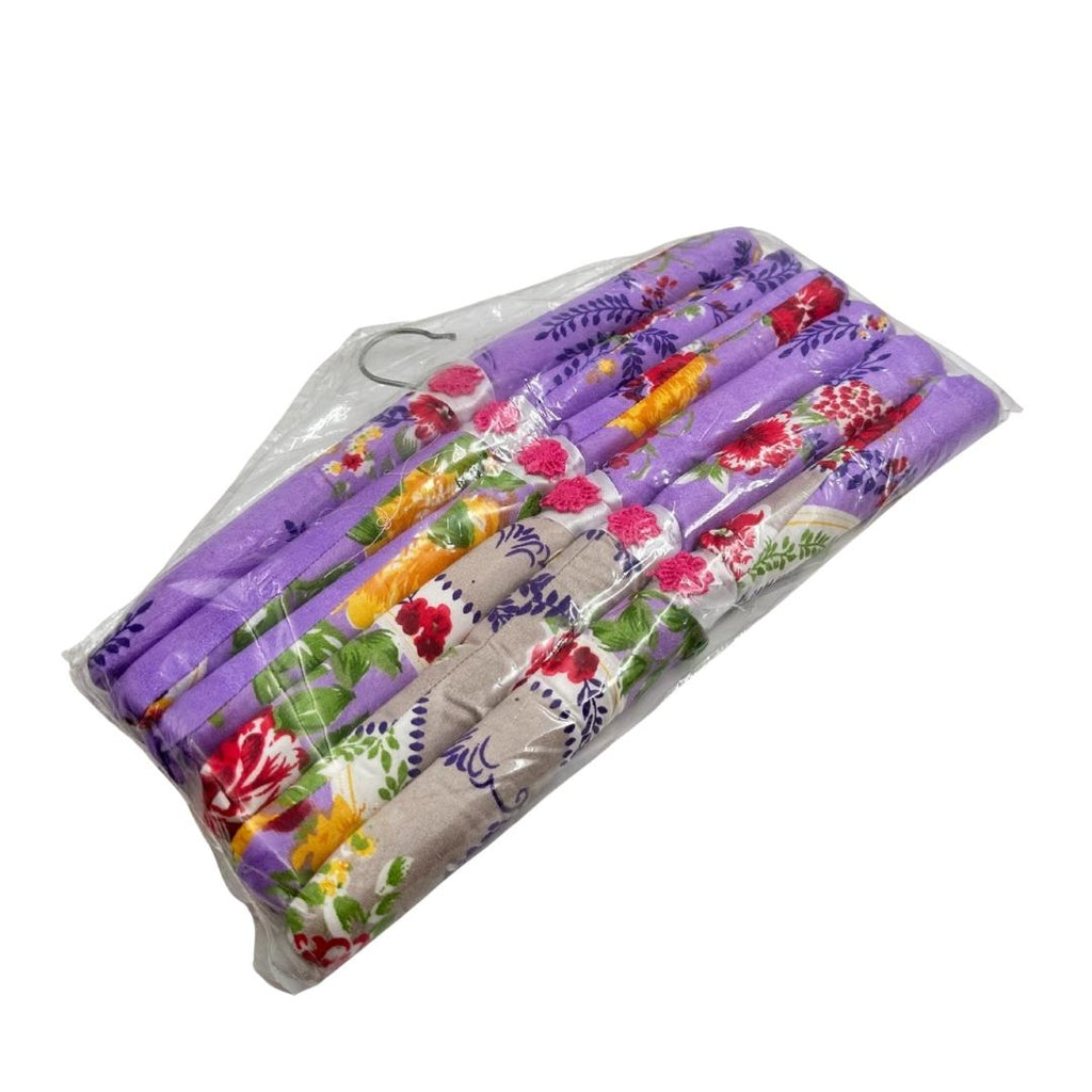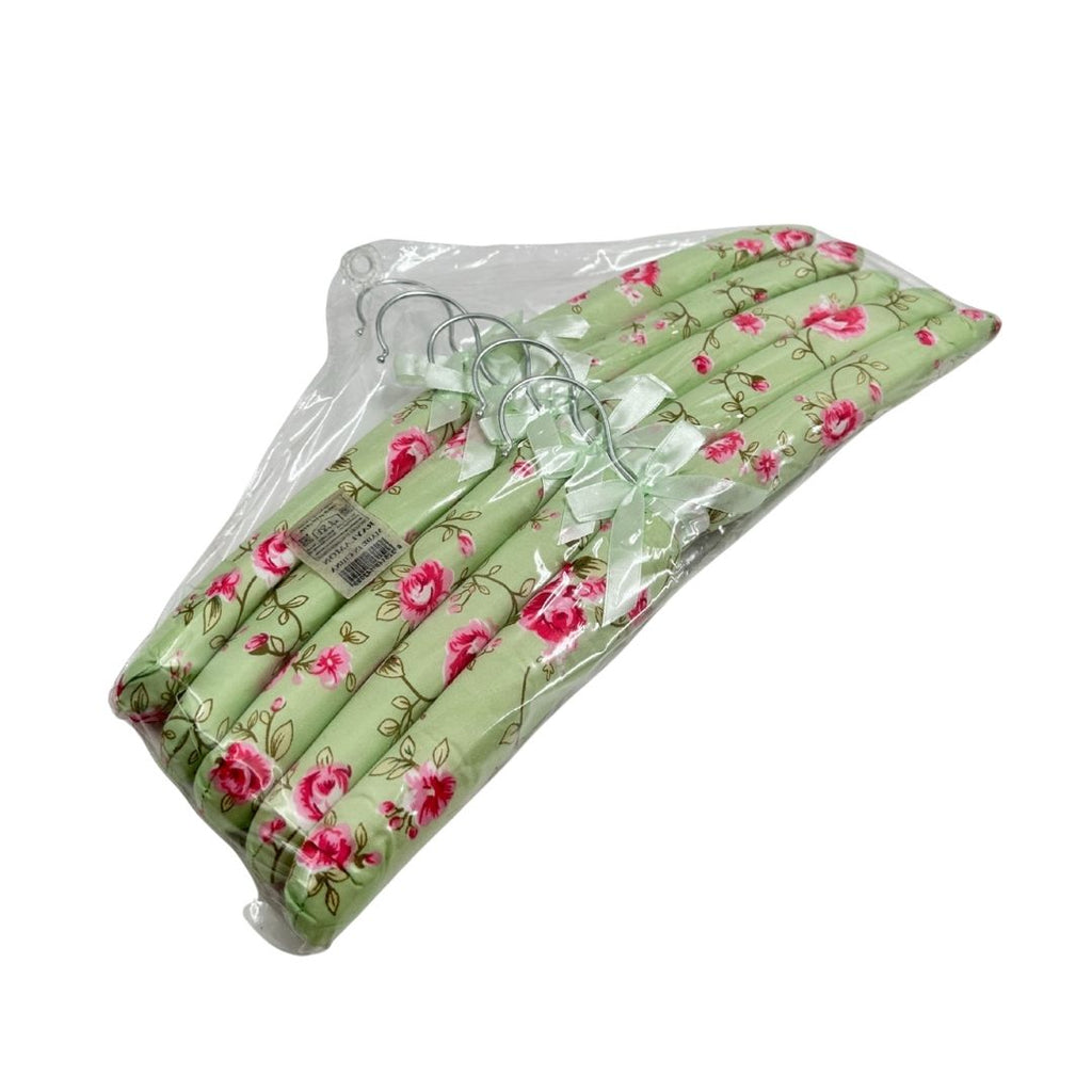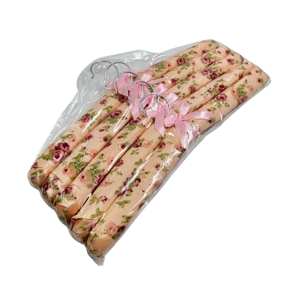 تصميم زهري أنيق: كل علاقة مغطاة بقماش ساتان ناعم مزخرف بالأزهار ومزينة بفيونكة جميلة.
