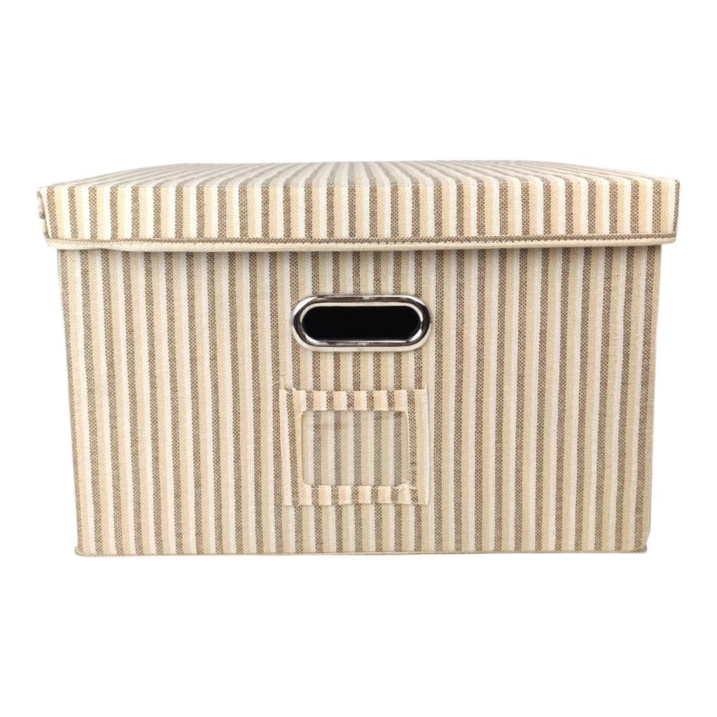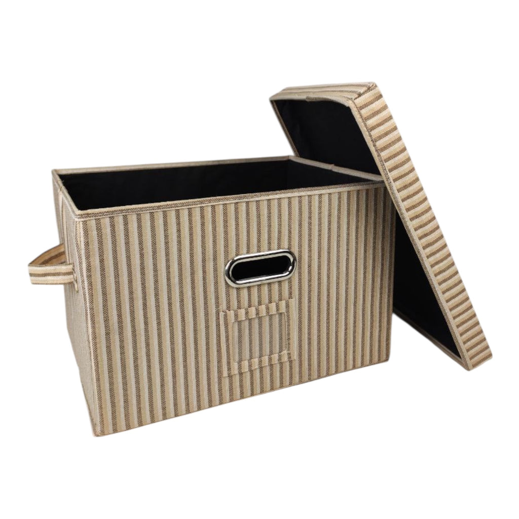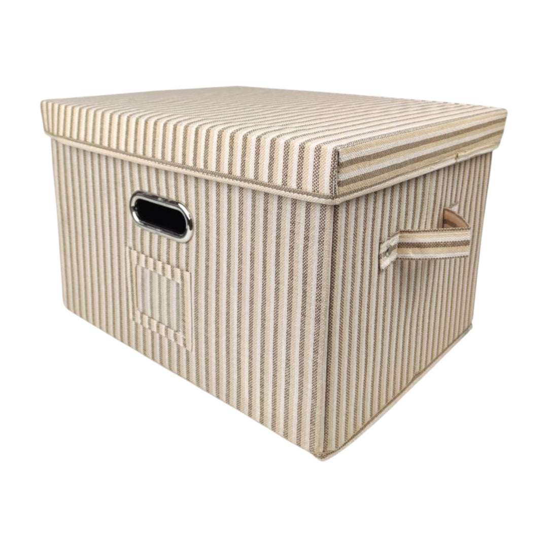 حافظي على منزلك مرتباً وأنيقاً مع صندوق التخزين القماشي المخطط بغطاء 39×29×25 سم. يتميز بتصميم عصري من القماش المخطط وهيكل قابل للطي، مما يجعله مثالياً لتخزين الملابس والألعاب والإكسسوارات ومستلزمات المنزل. يجمع هذا الصندوق بين العملية والأناقة ليضفي لمسة ديكورية مميزة على أي غرفة.
