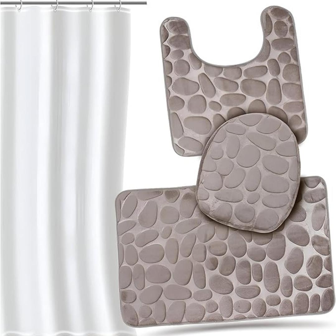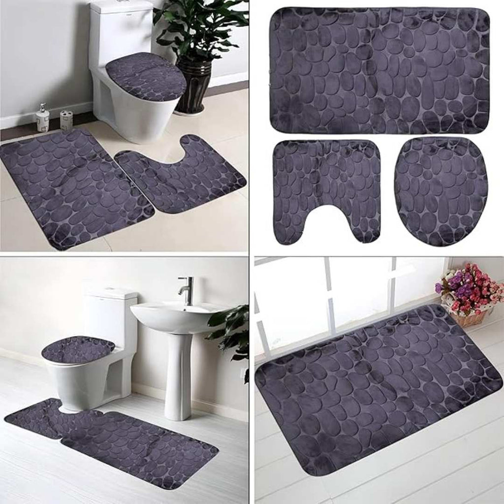 Complete 3-Piece Set: Includes a bath mat (50×80 cm), a contour mat (49×39 cm), and a stretchable toilet lid cover (up to 40 cm).