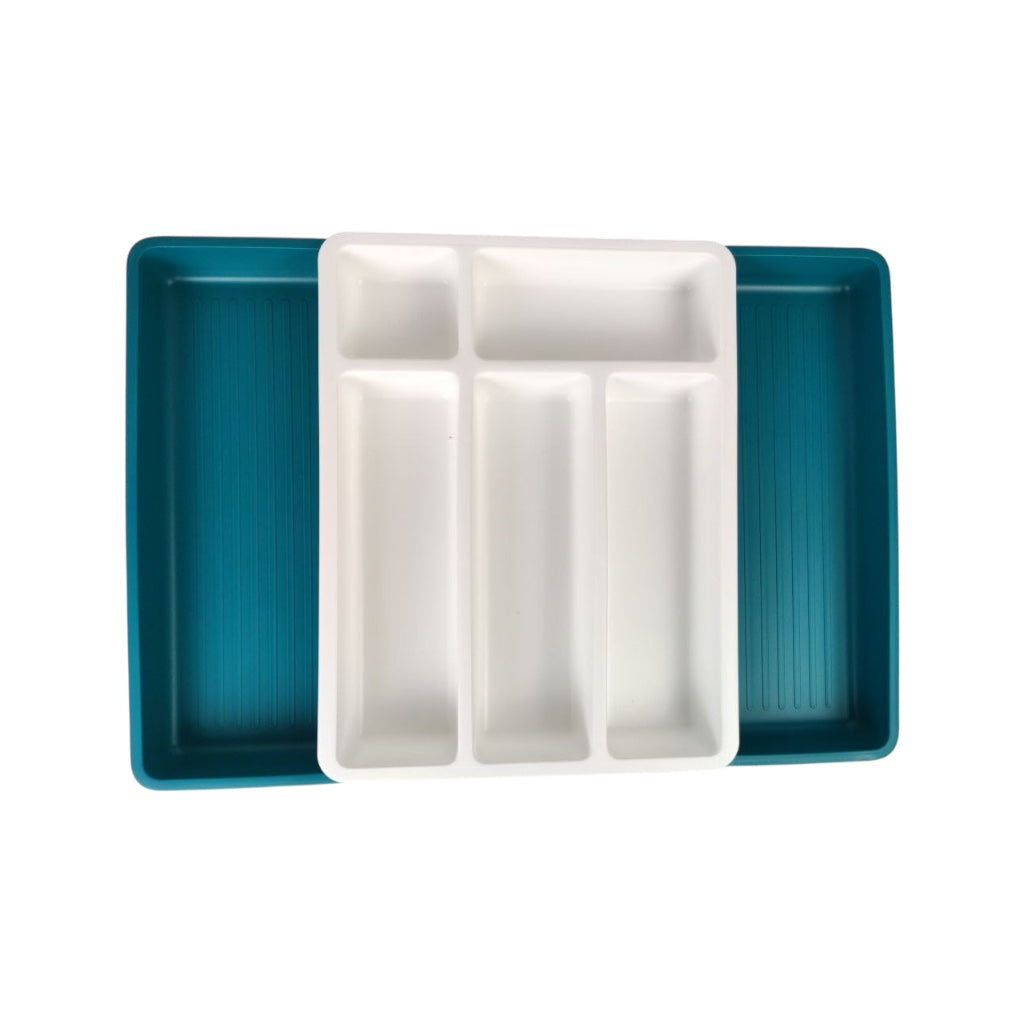 The M Design Expandable Cutlery Tray is the perfect solution for optimized drawer storage. This smart organizer is made from durable plastic and features a design that slides open and expands, allowing it to custom-fit most standard kitchen drawers. The tray provides multiple compartments of various sizes, ideal for keeping cutlery, large serving spoons, gadgets, and small kitchen tools neatly separated. This not only solves clutter but also protects your utensils from scratching each other. The clean, two-tone design adds a touch of modern style to your drawers.