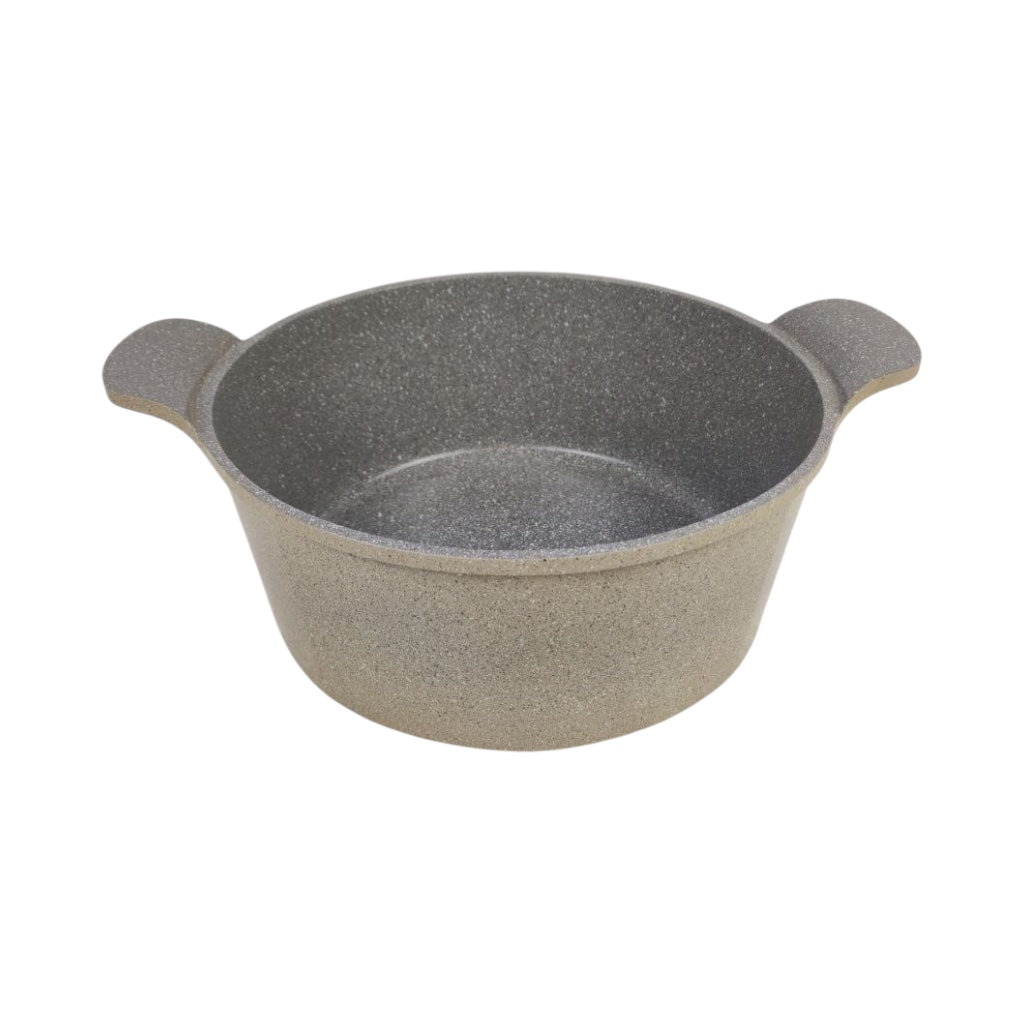 The Neoflam Granite Stockpot is the ideal solution for healthy, efficient cooking. This pot is crafted from durable, high-quality material with a premium Granite Coating, known for its superior non-stick performance and exceptional durability. The pot’s generous 28 cm size and ample capacity make it the perfect pot for preparing large family meals, from soups and stews to pasta and rice for the whole family. Its robust construction ensures even heat distribution and excellent heat retention, preventing hot spots and allowing for efficient, low-heat cooking that saves energy. The stylish speckled beige finish and modern silhouette, complete with a fitted lid, add a beautiful touch of minimal style to your kitchen and dining table.
